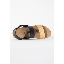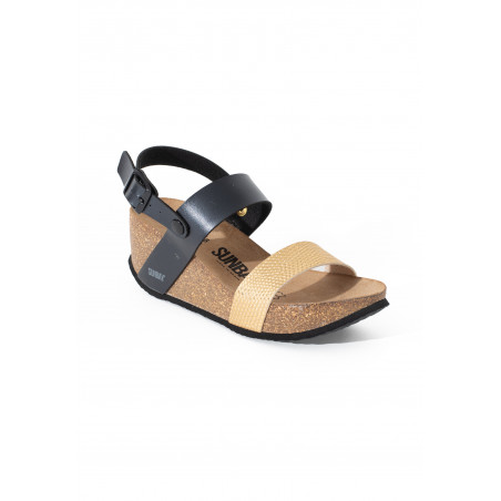 In dieser Saison präsentiert Sunbay eine schwarze Sandale, die unsere Aufmerksamkeit auf sich gezogen hat. Wir kennen einige, die schnell zu Fans der synthetischen Riemen und der Ledersohle werden. Alles, was Sie tun müssen, ist sie für einen femininen Stil anzuziehen.
