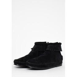 Diese trendigen Wildlederstiefel haben eine klare und elegante Silhouette mit den berühmten Fransen, die diesen Schuhen ein Plus verleihen.